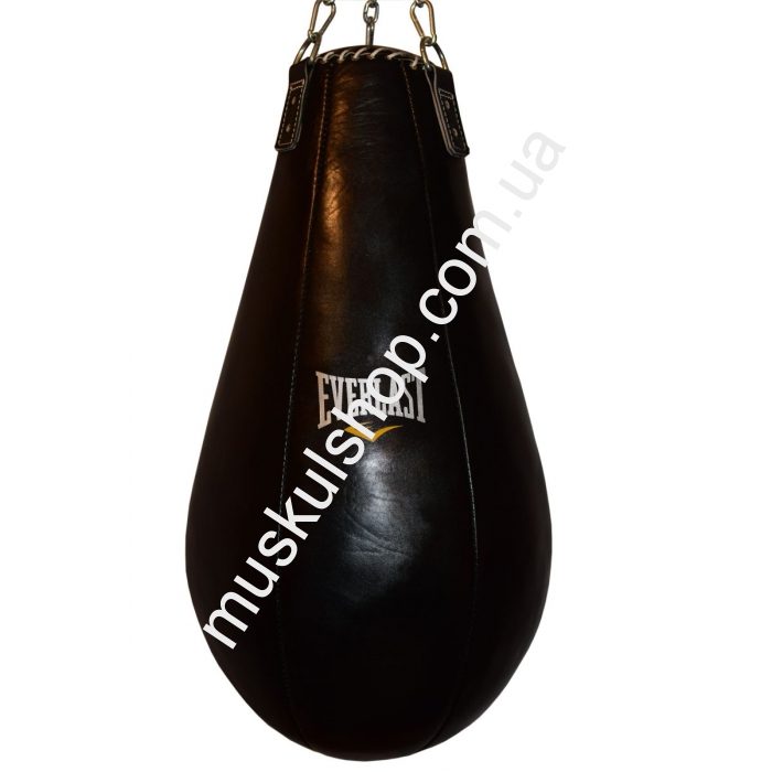 Груша для бокса Everlast обладает общим весом в 40 кг, она выполнена с ременной кожи, швы прошиты толстой нитью. Представлена модель в черном цвете, идеально подойдет для оттачивания различной техники ударов, например, апперкота или джеба. Груша используется для тренировок, не только начинающих бойцов, но и настоящих профессионалов. Толщина кожи составляет в пределах 6 мм. Наполнитель боксерской груши способен погашать все ударные волны, а также сводит к минимуму вероятность внезапных разрывов. Швы груши зашиты прочной нитью, а в местах ударов двойным швом, что отражается на продлении срока эксплуатации. В верхнюю часть установлено металлическое кольцо, а для крепления применять карабины и прочные, стальные цепи.