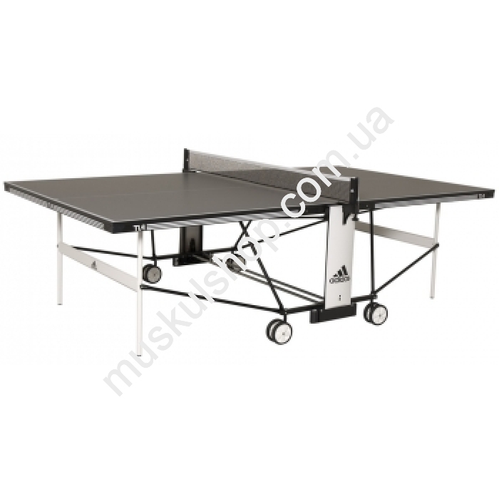 AdidasТеннисный стол Adidas Ti-4Теннисный стол для помещений Adidas TI-4 Характеристики: стол для закрытых помещений; Цветовая гамма: серый цвет; Матовость стола: антибликовое покрытие игровой поверхности защита от ультрафиолета; Ширина окантовки: 36 мм; Конструкция каркаса: нержавеющая суперпрочная рама из оцинковоной стали; Профиль рамы: 25 мм, синтетическая смола и лакированная сталь; Возможности транспортировки: 4 пары транспортировочных колес, оснащенные системой регулировки; Гарнитур: сетка PRO, с регулировкой натяжения верхнего края, входит в комплект стола; Фиксация на поверхности: система легкого и быстрого складывания Adidas Easy Folding System; Гарантия: 2 года Производитель: Adidas
