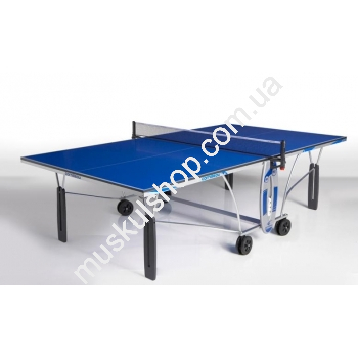 Гарнитур: сетка входит в комплект стола(возможность регулировки высоты и натяжения), ячейки для хранения мячей и ракеток