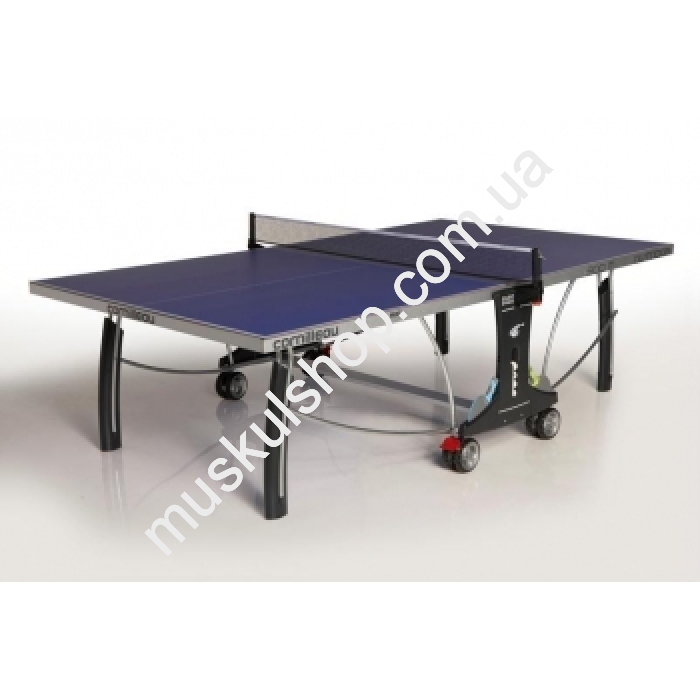 CornilleauТеннисный стол Cornilleau Sport 300 IndoorТеннисный стол Cornilleau Sport 300 - является самым популярным теннисным столом для закрытых помещений от Cornilleau в мире. Отличные характеристики и стильный дизайн, делают этот стол очень востребованным как для теннисных клубов, так и для частного использования. Теннисный стол имеет систему фиксации колес, встроенную сетку с регулировкой натяжения и боковые держатели для ракеток и мячиков. Теннисный стол Спорт 300 Cornilleau Sport 300 Indoor Тип стола: для закрытых помещений; Игровая плита: 19 мм + 35 мм окантовка; Цветовая гамма: синий цвет. Матовость стола: антибликовое покрытие игровой поверхности; Окантовка стола: нержавеющая, устойчивая к царапинам сталь с профилем 35 мм Ножки: сочлененные по две, диаметр 100 х 60 мм стальные, для устойчивости высокий резиновый башмачек Возможности транспортировки: двойные транспортировочные колеса (диаметр-150 мм), система фиксации на поверхности и тормоза. Гарнитур: сетка входит в комплект стола(возможность регулировки высоты и натяжения), ячейки для хранения мячей и ракеток Фиксация на поверхности: механизм фирменной "DSI" фиксации для безопасной установки даже на неровной поверхности; Гарантия: 3 года на все конструкции Производитель: Cornilleau