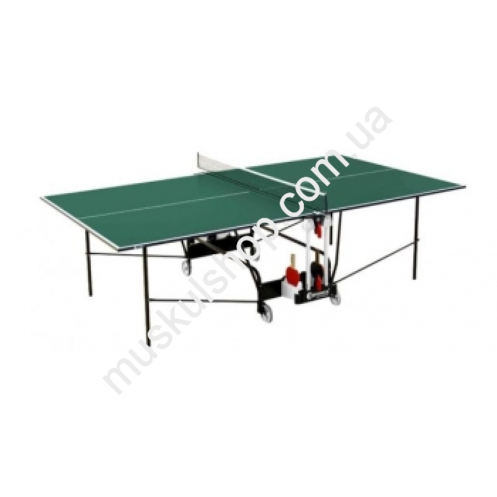 Конструкция стола позволяет тренироваться в одиночку. Цвет стола: зеленый. Каркас: черного цвета, металл, округлые профили, диаметр 25 мм Колеса: 4 колеса диаметром 125 мм, 2 колеса - маневренные. Сетка: входит в комплект. Цвет сетки: черный,всегда готова к игре. Специальная конструкция позволяет не снимать ее при складывании стола. Гарантия: 1 год Производитель: Sponeta