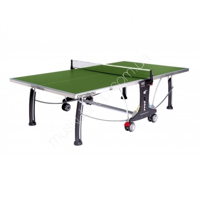 Гарнитур: сетка входит в комплект стола; боковые держатели для ракеток и шариков.