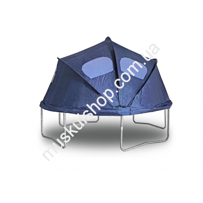 Палатка для батута 304 см - в качестве несущей конструкции используются высокопрочные стекло пластиковые трубы, а также высокопрочная, водонепроницаемая и стойкая к воздействию ультрафиолетового излучения нейлоновая ткань и специальные складывающиеся соединения, что позволяет установить или сложить тент в течение пяти минут.