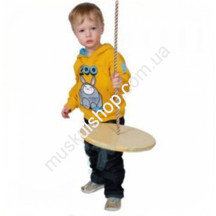Приятный на ощупь и надёжный канат, тарелка очень прочная из многослойной фанеры обеспечивает удобную и комфортную посадку и взрослому человеку до 70 кг. и ребенку.