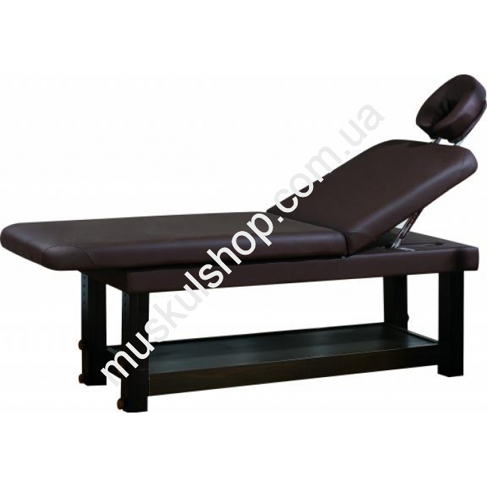 Имеет сьемный подголовник на металлическом основании, что придает столу еще большей практичности.