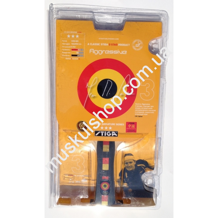 StigaРакетка Aggressive WRB ITTFРакетка Aggressive WRB ITTF 1590-01: с пятислойным основанием, подходит для игроков, которые хотят неограниченного контроля в успешной, скоростной, атакующей игре. Характеристика ракетки Aggressive WRB ITTF 1590-01: Класс: 3* Ручка: CONCAVE Накладки: TRIUMPH 2.0