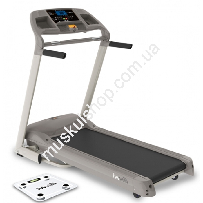 Транспортировочные ролики; Дополнительные функци: беспроводная система управления весом "Intelligent Weight Management™" (IWM), вход для МР3 и встроенные HI-FI стерео-колонки; Беговое полотно: двухслойное; толщина: 1,6 мм; Пульс: измерение пульса с помощью датчиков на рукоятках и возможность подключения нагрудного кардиодатчика "POLAR". Сборка: минимум соединений в конструкции - требует минимум усилий при сборке. Складывание: удобная система раскладывания с блокиратором случайного раскладывания и пружинами облегчающими опускание /поднимание бегового полотна. Для высокого комфорта и безопасности установлен гидравлический цилиндр облегчающий процедуру складывания/раскладывания дорожки Мощность двигателя: 2,5 л.с. Питание тренажера: 220В Скорость: 0,8-16,5 км/час Угол наклона бегового полотна: 0-12%, электрический Тип рамы: складывается Показания дисплея: скорость, время, дистанция, калории, пульс, угол наклона, программы Безопасность: безопасная система блокировки тренажера при падении. Гарантия: 1 год. Производитель: Eurofit