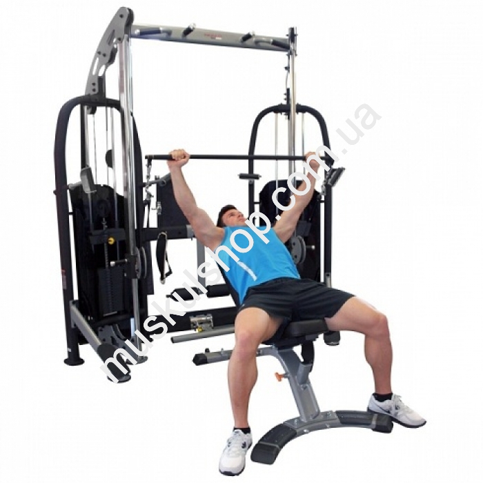Габариты (ДхШхВ): 276х210х229 см Вес стеков: 2 х 90 кг (20 плит по 4,5 кг); Вес: 474 кг Вес спортсмена: 250 кг