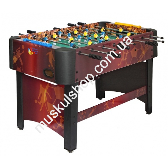 Стержни идут уже в сборе с игроками; Материал игрового поля: МДФ, с толщиной-5мм; размер игрового поля: 102х58 см Боковые панели: 16 мм, шириной 17 см Игровые стержни: диаметр 13 мм, крепкая хромированная сталь; Счёт: пластиковые; Игровые мячи: 2 шт; Количевство вратарей: 2; Панели ножек: 5 мм, МДФ Регулирование ножек: диаметр 4 см., хромированные пластины; Вес настольного футбола: 22 кг; Размер коробки: 119,5 см x 61 см x 78 см. Гарантия: 1 год