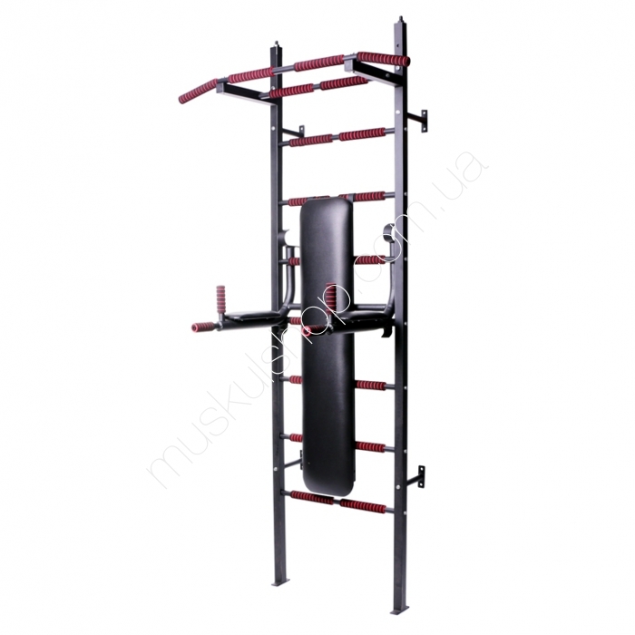 АлексейПриобрел такую стенку, в товарном чеке значится просто - шведская стенка серебро. Фото немного не соответствует действительности, брусья, навес для штанги, навес для пресса с упором на руки - все реализовано в одном элементе, навес для штанги не очень удобен, если бы не расцветка, то очень смахивает на стенку Master (Black), в целом неплохая.