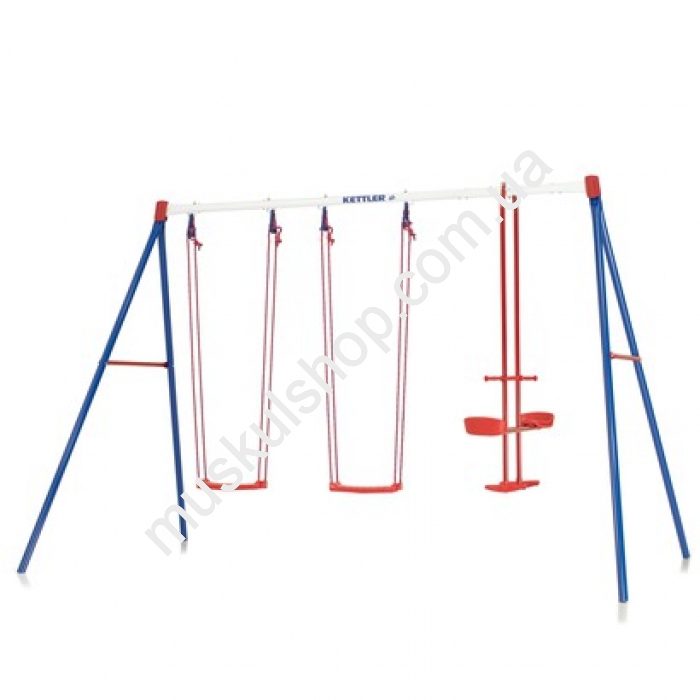 Kettler Тройные качели Kettler Тройные качели - станут прекрасным дополнением детской площадки в саду, на загородном участке или во дворе у дома, любимым местом подвижных игр Вашего ребёнка и его друзей.