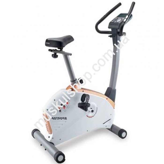 SporTopВелотренажер Sportop B870PВелотренажер Sportop B870P современный электромагнитный тренажер для тренировки сердечной мышцы, дыхательной системы и фитнес нагрузок для всего тела. Назначение: предназначен для тренировки кардиосистемы, дыхательной системы, развивает икроножную, ягодичную и четырехглавую мышцу бедра; Вес маховика: 9 кг; Нагрузки: электромагнитная система нагрузки (16 уровней); Покрытие велотренажера: гиппоалергенное покрытие элементов тренажера; Консоль: на консоли размещен монохронный LCD дисплей, который показывает характеристики выбранного Вами профиля тренировки: время, дистанцию, скорость, каллории, фитнес-тест, часы, пульс; Компьютер: 17 встроенных программ, в том числе 4 пульсозависимые; возможность создавать уникальную пользовательскую программу;