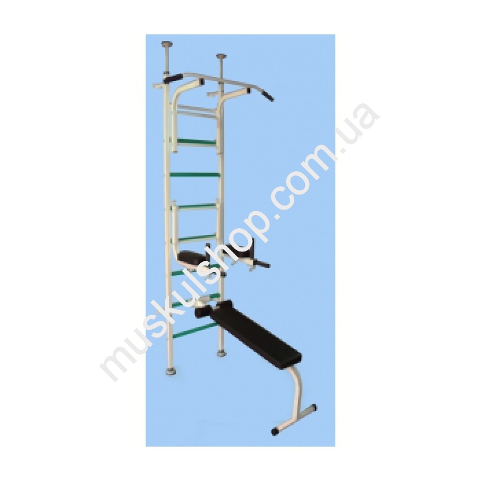 Шведская стенка VD-sport СТШ Чемпион со съемным гнутым широким турником, брусьями с подставкой под штангу, лавкой для пресса и жима.