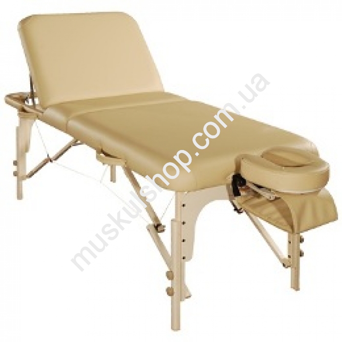 Трехсекционный массажный стол складывается в маленький чемодан и минимум выдерживает 250 кг рабочей нагрузки. Специально для массажа "шиатсу"-: отстегиваются тросы, и массажный стол подгибает ножки и полностью ложится на пол;