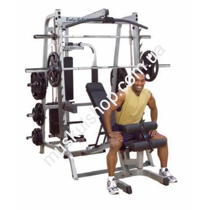 Body SolidМногофукциональный тренажер на базе машины СмитаМногофункциональный тренажёр на базе 348 машины Смита. В состав тренажера включены: Машина Смита GS348,