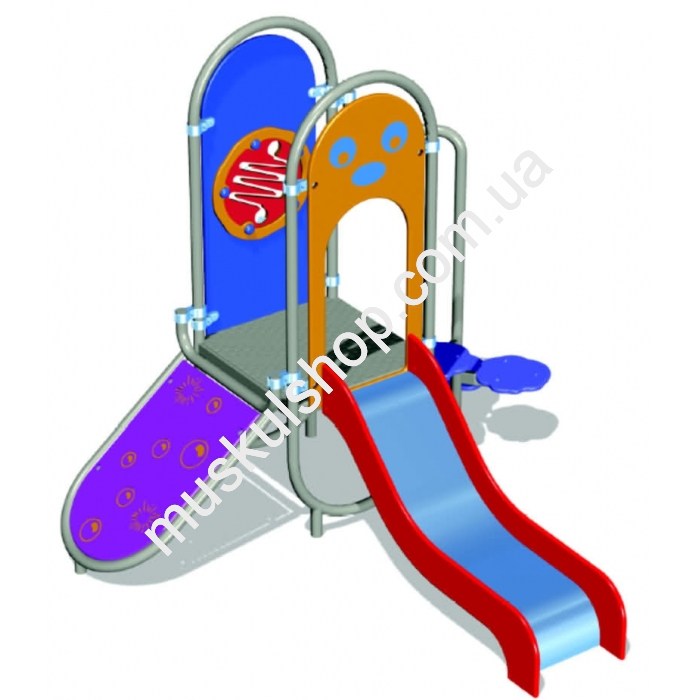 Детский комплекс "Мадрид" Данная детская площадка состоит из детской горки, веселых панелей, платформы, подъема для скалолазания и ступенчатого подъема.