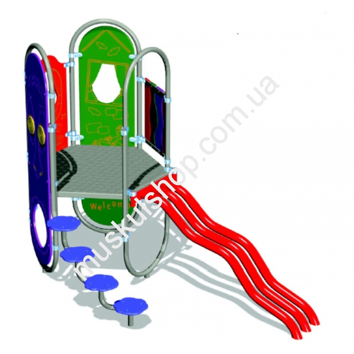 Возрастной диапазон от 3 до 8 лет. Ультрасовременная детская площадка. Эта детская площадка отлично подойдет вашему частному участку, детскому комплексу или детскому игровому парку. Данная детская площадка состоит из детской горки (или экстремальной горки), веселых панелей, платформы и ступенчатого подъема.