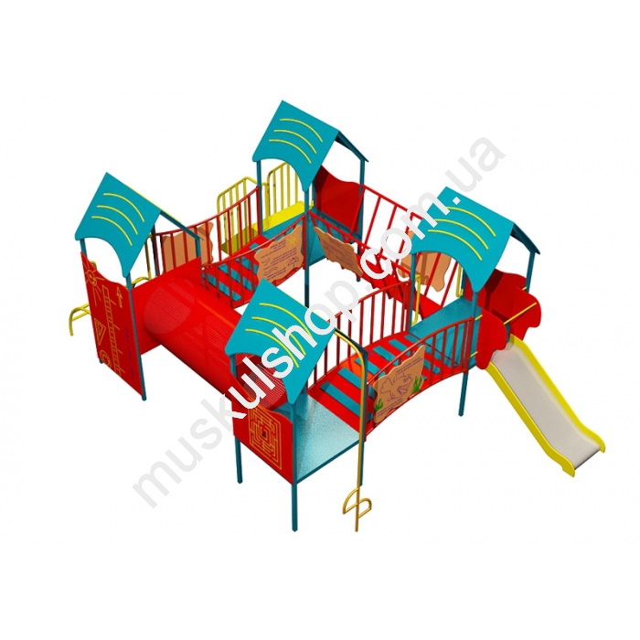 | Описание: | Возрастной диапазон до 4 лет. Данная детская площадка идеально подходит детских игровых комплексов и детских парков. Детская площадка состоит из трёх башен с платформами, вогнутого и выпуклого мостиков, детской горки, ступенчатой лестницы, маленькой металлической лестницы, «веселого» спуска, шести панелей рифм и трёх вертикальных ступенчатых лазалок. |