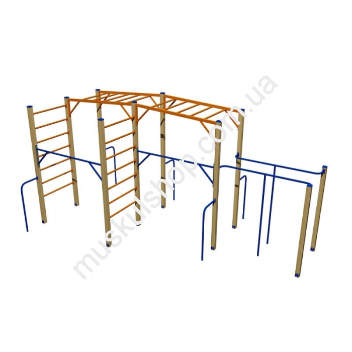 Спортивный комплекс состоит из рукоходов, шведских стенок, турников, брусьев, трубы.