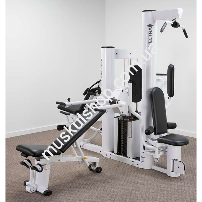Силовой комплекс Vectra VX-38 предназначен для тренировок в слабокоммерческих условиях, возможность занятий четырех человек одновременно, позволяет выполнить более 25 упражнений на мышцы всего тела;