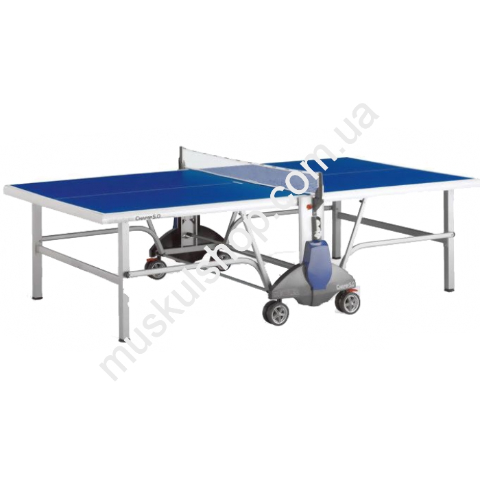 Встроенная сетка автоматически натягивается при раскладывании стола. Возможности транспортировки: Оборудован четырьмя транспортировочными колесиками с тормозами 140 мм. Комплектация: Есть защитная окантовка плиты (профиль 55 мм). оборудован механизмом складывания с блокиратором двойного действия. Теннисный стол Kettler Champ 5.0 имеет прочные ножки из овальной трубки с профилем 55 мм. обладает интересным дизайном, высоким уровнем безопасности и отличной функциональностью. Теннисный стол Kettler Champ 5.0 имеет складную конструкцию: сложив одну половину, вы можете тренироваться самостоятельно а так же стол оснащен держателями для ракеток и мячиков. Ширина канта: 65 мм. Цвет: синий. Цвет шасси: серебристый металлик. Гарантия: 3 года. Производитель: Kettler