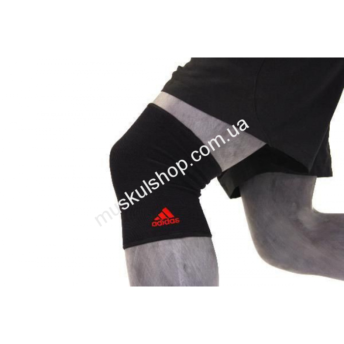Бандаж Adidas благодаря своей анатомической форме, призван увеличить гибкость суставов спортсмена, значительно повысить степень сжатия мышц, защитить их и связки, он безупречно согреет колено спортсмена, защитит его от внезапных растяжений, травм и других спортивных перегрузок. Представлен бандаж в черном цвете, с нанесением фирменного логотипа бренда, очень часто его применяют после реабилитации. Инвентарь разработан специально для поддержки колена, из прочного, дышащего и хорошо впитывающего влагу неопрена, полиэстера и нейлона. Конструкция инвентаря не сковывает движений спортсмена в момент тренировок или состязаний, а общий вес в 0,3 кг, позволяет вообще его не ощущать.