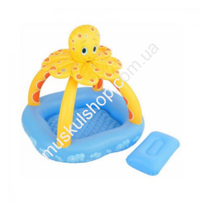 BestWayБассейн надувной детский Bestway 52145Бассейн детский надувной с навесом Осьминог Bestway 52145 это компактное игровое приспособление, которое чаще всего используется для детей. Оно имеет складную конструкцию, а, если говорить точнее, надувную, благодаря чему хранение данного аппарата не занимает слишком много места. В любое время и в любых условиях вы просто можете достать его и накачать специальным насосом, тем самым, подготовив к использованию. Надувание бассейна не займёт слишком много времени, зато после его можно будет использовать на протяжении многих часов.