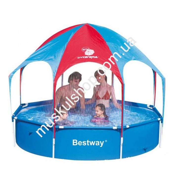 Бассейн каркасный с тентом и дождиком Бествей 56193 можно легко и быстро установить, при чём, без использования для этого каких-либо дополнительных подручных средств. Благодаря своей простоте использования данное приспособление не нуждается в какой-то дополнительной подготовке в виде насыпи песка, вырывании небольшого котлована, или же в подготовке грунта. Если необходимо, вы сами можете контролировать уровень воды в бассейне, тем самым, подготавливая его для ваших малышей. Компактная конструкция в сдутом и сложенном состоянии позволит хранить данное приспособление даже в простом ящике стола, что, несомненно, можно назвать плюсом.