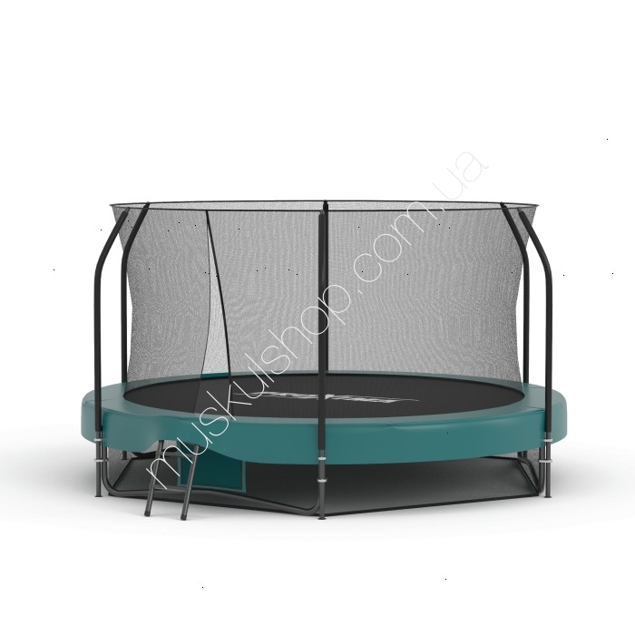 Полотно и дополнительные элементы выполнены в цвете Изумрудный газон, батут идеально впишется в экстерьер любого участка