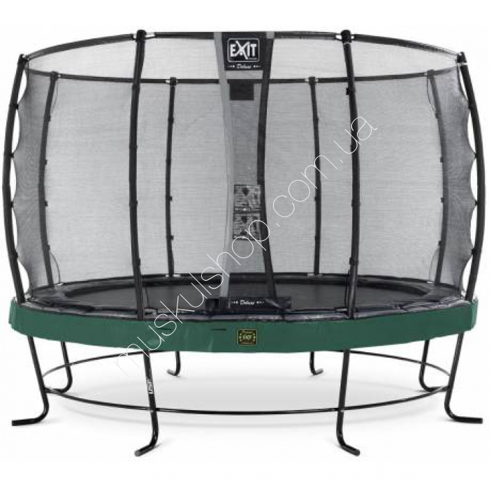 ExitБатут с сеткой Exit 08.20.14.20Батут с сеткой Exit Elegant Premium 427 (14ft) + Safetynet Deluxe (Green) 08.20.14.20 идеальное игровое приспособление, которое также способно выполнить функцию и тренировочного оборудования. Использование представленного батута обеспечит веселое времяпровождение, одновременно развивая у пользователя равновесие, координацию движений и вестибулярный аппарат. Прочное и эластичное полотно приспособления позволяет совершать прыжки во время растягивания и возвращения к своей изначальной форме. Батут с сеткой Экзит Элегант Премиум 427 (14фт) + Сейфтинет Делюкс (Гриин) 08.20.14.20 оснащается прочной и надежной основой в виде стойки с несколькими ножками, которые не позволяют батуту заваливаться и падать. Дабы обеспечить дополнительную безопасность, батут был оснащен сеткой для защиты пользователя от падения. Прочные пружины удерживают полотно для прыжков в натянутом положении, не позволяя ему провисать.