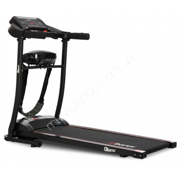 Беговая дорожка AbarQs BZ-402M со встроенным вибромассажером имеет высокотехнологичный двигатель в 2 лошадиные силы, который способен развивать скорось бега пользователя 12 км/час, тренажер оснащен современным компьютером с богатыми функциональными возможностями и встроенными 12 программами тренировок. Прочная конструкция в сочетании с большой полезной площадью бегового полотна 110 х 40 см и грузоподъемностью до 110 кг гарантирует максимальный комфорт при выполнении упражнений. Консоль беговой дорожки имеет встроенный LCD экран, который отображает всю необходимую информацию во время тренировки, такую как скорость, пройденное расстояние, время, частота сердечных сокращений, количество сожженных калорий и многое другое. Дополнительные аппаратные преимущества - это разъем AUX для подключения телефона с помощью кабеля типа «джек-джек».