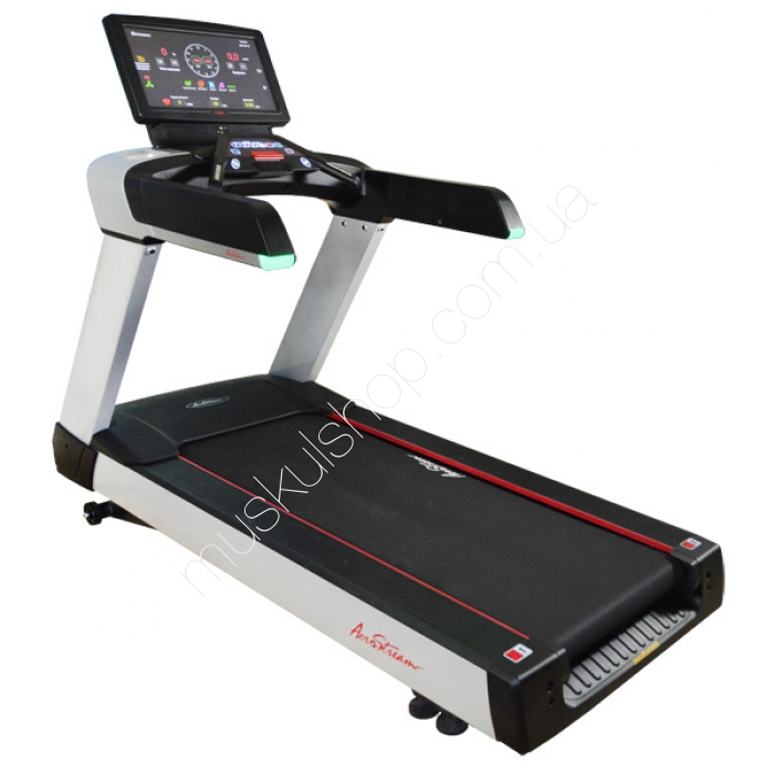 Беговая дорожка AeroStream N8T отличается от своего предшественника более широким диапазоном выбора тренировочных программ и различных режимов. Программы представленного тренажера позволяют последовательно изменять интенсивность тренировки. Регулировка полотна дорожки для бега обеспечивает дополнительную нагрузку на мышцы ног, позволяя пользователю даже настроить бег под горку. Беговая дорожка АэроСтим Н8T оснащается бесшумным двигателем, который не будет раздражать пользователя во время тренировки. На ручках размещены кнопки регулировки желаемой интенсивности и необходимого наклона, а так же датчики измерения пульса. Возле бортового компьютера, как раз под рукой, сделан держатель для стакана или бутылки с водой.
