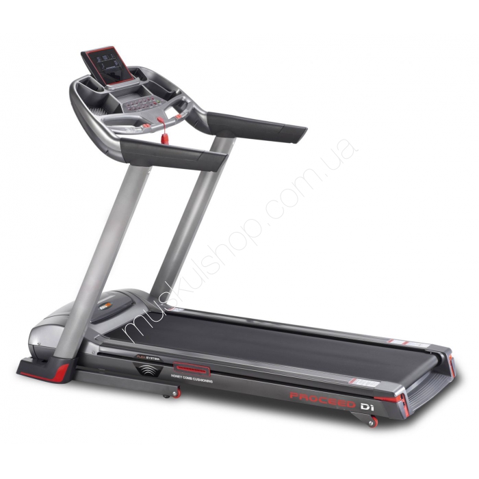 Беговая дорожка Eurofit Proceed D1 имеет прочную конструкцию, которая позволяет значительно продлить срок использования подобного оборудования. Небольшие подпятники позволяют обеспечить устойчивость оборудования время тренировок, а компактные колёсики значительно облегчают возможность его транспортировки. При использовании представленного оборудования у себя дома не будет надобности посещать тренировочные центры и спортивные учреждения. Современный дизайн тренажера идеально сочетается с его функциональностью и универсальностью, обеспечивая этим его популярность среди пользователей. Беговая дорожка Еврофит Просиид Д1 станет прекрасным другом и незаменимым тренажёром для всей семьи, который позволит укрепить здоровье пользователя и повысить его выносливость. Простота эксплуатации подобного аппарата обеспечивается за счёт наличия удобного компьютера, который позволит вам контролировать все необходимые процессы тренировок, меняя при этом нагрузку.