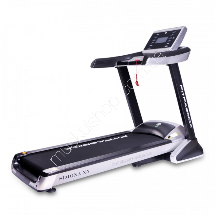 Беговая дорожка FitFabrica Simona X5 - отличается прочной стальной рамой и усиленной декой, что максимально приближает эту дорожку к профессиональным моделям. Двигатель мощностью 4 лс позволяет развивать скорость до 18 км/ч и сохраняет при этом низкий уровень шума благодаря системе Power Tech. Данная модель оснащена очень мягкой системой амортизации, состоящей из 12 специальных эластомеров Extra Safety Run Absorbing System, дополненных системой Run Damping Control.
