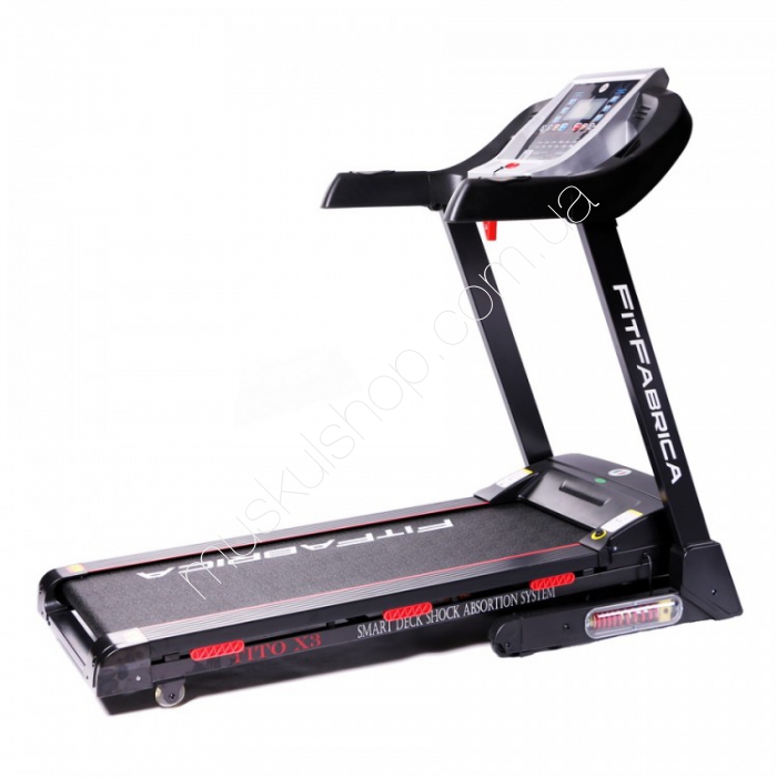 Дизайн и конструкция FitFabrica Tito X3 продуманы до мелочей. Благодаря складной конструкции тренажер не занимает много места, а гидравлическая система складывания с доводчиком позволяет сложить и разложить дорожку за считанные секунды и без особых усилий. Перемещение беговой дорожки не оставит следов на напольном покрытии за счет прорезиненных транспортировочных роликов. 8-ми уровневая запатентованная система амортизации бегового полотна, антишок пружина в базовой раме беговой дороржки, система автосмазки бегового полотна, Gfit приложение для мобильных устройств (для Androig и i.OS), безшумный мотор, менее 68db.