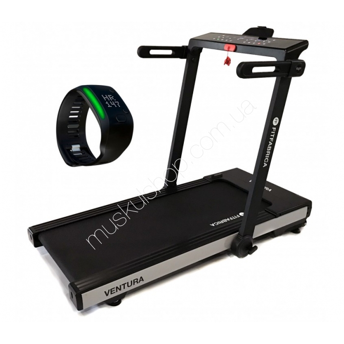 Беговая дорожка FitFabrica Ventura T650 – полностью складная беговая дорожка. Модель 2019 года, обладает солидными характеристиками, имеет электрический угол наклона, широкое полотно 51 см, bluetooth для подключения смартфона, с возможностью сохранения прогресса тренировок а также полноценного управления беговой дорожкой в приложении FitShow.