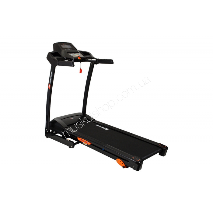 Беговая дорожка Hop-Sport HS-1402 обеспечивает бесшумную и ровную работу даже во время особо интенсивных и продолжительных тренировок, а всё благодаря современной системе амортизации. Прочная стальная рама была усилена в местах соединения по швам, дабы тренажёр мог выдерживать практически любые повышенные нагрузки и служить вам значительно дольше. Удобные размеры бегового полотна и его рифлёная поверхность позволит вам не беспокоиться о том, что вы можете случайно поскользнуться, или сойти с дорожки. Беговая дорожка Хоп-Спорт ХС-1402 отличается встроенным многофункциональным компьютером с понятной системой управления и широким экраном, на котором высвечиваются все необходимые показатели тренировочного процесса. Для того, чтобы упростить перемещение дорожки, она была оснащена специальными небольшими роликами для транспортировки. Компактные габариты, а также индивидуальный и привлекательный дизайн оборудования позволит тренажёру стать прекрасным дополнением к интерьеру любого спортивного центра, или квартиры.
