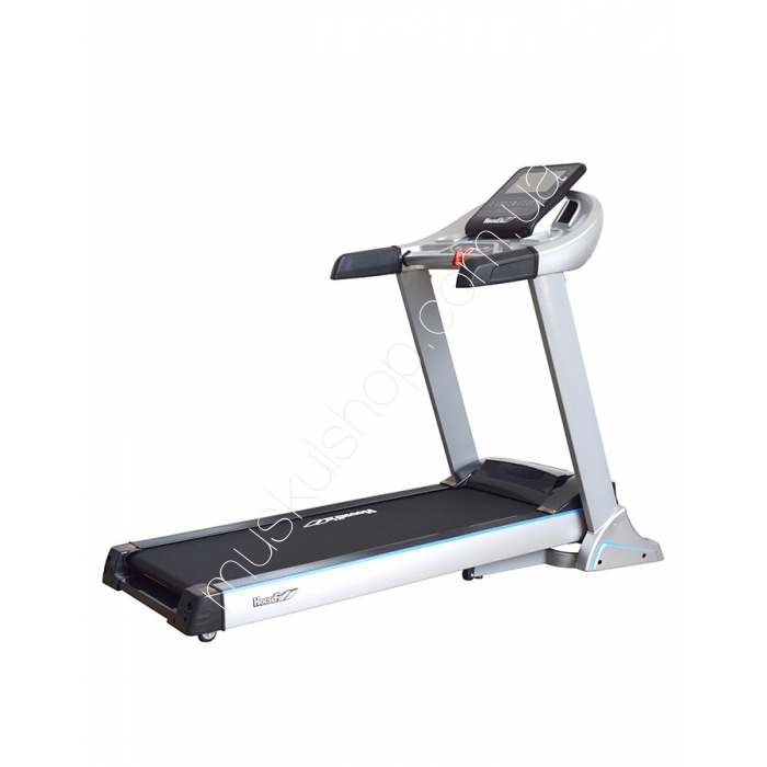 Беговая дорожка HouseFit HT 9111ET работает на базе операционной системе ANDROID. Она была создана с учётом современных технологий. Ключ аварийной остановки. Сенсорные датчики измерения пульса на отдельных рукоятках. Система складывания оснащена гидравлическим поршнем с замком. Транспортировочные колёса для удобства перемещения. Для удобства изменения параметров во время тренировки предусмотрены дополнительные кнопки мгновенного выбора скорости и наклона на рукоятках и консоли. Функции: наклон, скорость, дистанция, калории, время, пульс, количество шагов, фитнес оценка.