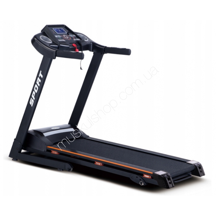 Солидная и стабильная конструкция. Разнообразие тренировочных программ, большой четкий дисплей, возможность подключения MP3-плеера - эти элементы отличают эту беговую дорожку от других моделей, доступных на рынке. Беговая дорожка имеет колонки и входы: USB, SD, подключение MP3 с телефона или другого внешнего устройства. ЖК-дисплей: время, скорость, расстояние, калории, пульс.