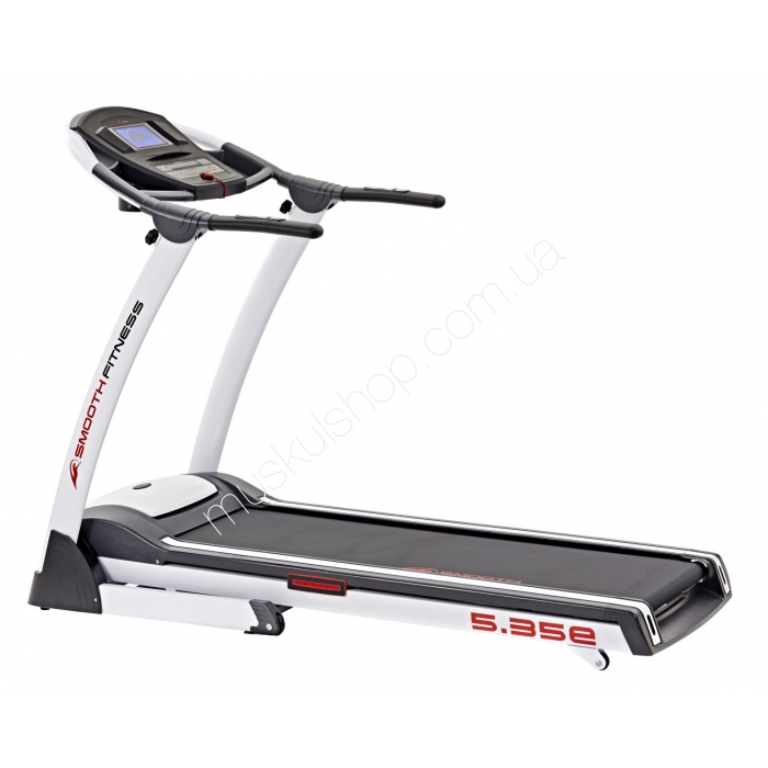 Беговая дорожка Смууз Фитнесс 5.35e удобный дисплей и простая консоль значительно облегчает возможность проведения всех тренировок. Для того, чтобы ваши занятия на тренажёре проходили более эффективно, вы самостоятельно можете выбрать необходимую, или же понравившуюся программу для тренировок. Показания на дисплее компьютера позволяют неотрывно следить за характеристикой тренировки и одновременно за самим здоровьем пользователя. Данный тренажёр позволит вам не только натренировать мышцы ног и повысить общий тонус организма, но также обеспечит возможность улучшения сердечно-сосудистой системы.