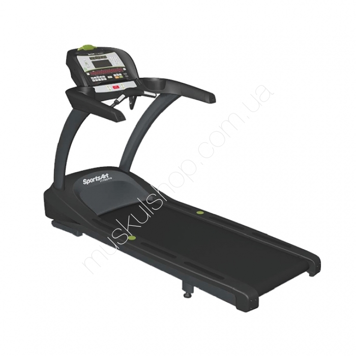 SportsArtБеговая дорожка SportsArt T655Беговая дорожка SportsArt T655 оснащена специальными датчиками по измерению пульса пользователя, которые размещены в рукоятях. У неё имеется кнопка для быстрого старта. Широкое полотно дорожки обеспечивает комфорт во время бега. Сам тренажёр обладает несколькими пользовательскими программами, которые можно выбирать по желанию из списка. Для более удобной транспортировки дорожки, она оснащена специальными роликами. Беговая дорожка СпортсАрт Т655 обладает прочной конструкцией, которая обеспечивает устойчивость в любой ситуации. Благодаря амортизационному покрытию все вибрации, которые могут возникнуть во время тренировок, поглощаются, а потому тренажёр работает в бесшумном режиме.