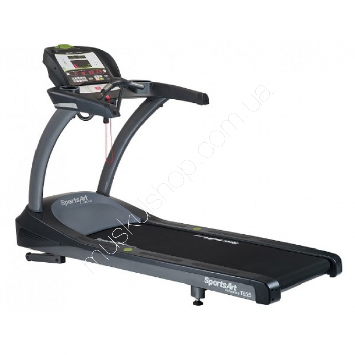 SportsArtБеговая дорожка SportsArt T655LБеговая дорожка SportsArt T655L это красочное разнообразие функционала, достоинство которого, безусловно, оценит любой пользователь в процессе высококомфортной тренировки на данной модели. Широкий функционал бортового компьютера позволяет не только следить за всеми показателями тренировочного процесса, что высвечиваются на дисплее, но и контролировать саму тренировку. При желании даже во время бега вы сможете увеличить, или уменьшить нагрузку, исходя из своих предпочтений. Беговая дорожка СпортАрт T655Л оснащается мощным двигателем, который обеспечивает тихую работу оборудования, вместе с системой амортизации, что способна поглощать любые вибрации во время бега. Широкое беговое полотно с не скользящей поверхностью отличается своей прочностью и устойчивостью перед износом, благодаря чему оно не будет протираться даже при ежедневном использовании дорожки. Беспроводные датчики, что находятся на рукоятках оборудования, обеспечивают своевременный контроль сердечного ритма пользователя.