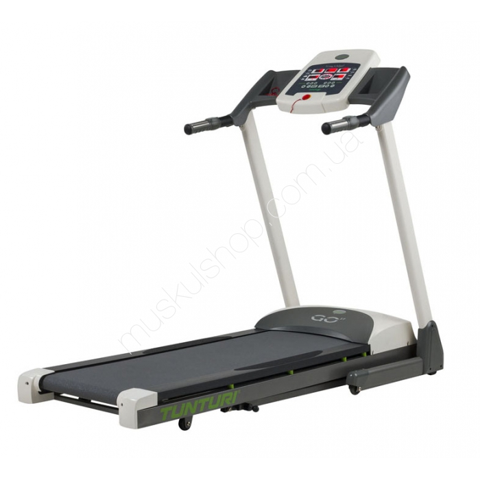 TunturiБеговая дорожка Tunturi Run GO 15Беговая дорожка Tunturi Run GO 15 отличается тем, что любой пользователь, занимаясь на данном аппарате, сможет значительно улучшить свои физические показатели, как и состояние здоровья. На широком и ярком дисплее тренажёра при любой тренировке высвечиваются необходимые данные, дабы вы могли самостоятельно контролировать процесс того, как проходят ваши занятия. Рукояти тренажёра оснащены мягким покрытием, благодаря чему каждая ваша тренировка будет комфортна, а руки не пострадают от натёртостей. Одним из плюсов данного аппарата можно назвать тот факт, что он превосходно подойдёт не только для применения в специализированных спортивных учреждениях, но и в условиях дома, даже перед телевизором.