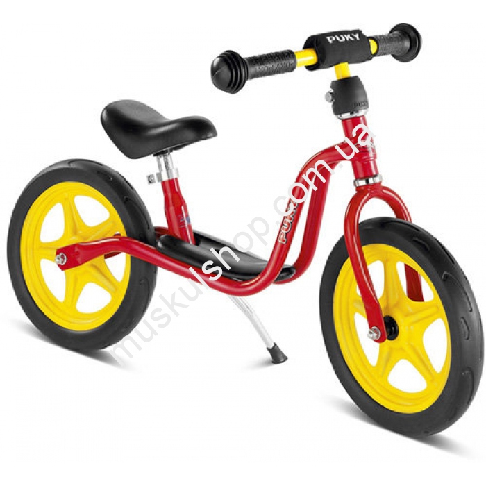 Беговел Puky модель LR1 Eva укомплектован: подставкой для парковки, мягкими подушечками на руле, а также рамой низкой посадки. Детское транспортное средство представлено в красном цвете, используют дети старше 2,5 лет, рассчитан на детей общим ростом до 105 см. Седло регулируемой, максимальная высота подъема - 42 см. Срок гарантии на беговел составляет 12 месяцев, он способен выдерживать пользователя с общим весом до 25 кг, при этом вес беговела не более 5 кг. Отличается модель хорошей устойчивостью, рулем с мягким ходом, обтекаемой формой без лишних и острых углов, также предусмотрены литые колеса на мягких подшипниках. Диаметр колес 12 дюймов, которые вращаются абсолютно бесшумно.