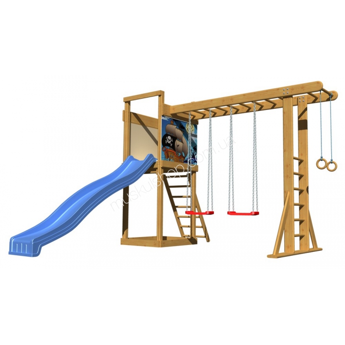 Детская площадка Sportbaby-15 современный уголок для развлечения и отдыха непосед. Тут детишки не только займутся делом, но и укрепят свой иммунитет. Такая деревянная площадка идеально подойдет для загородных домов и дач. Играть на такой площадке могут сразу несколько непосед, рассчитана модель на большую семью. Комплекс комплектуется рукоходом, качелями, горкой для спуска, кольцами для упражнений, лестницей из веревок. Такой комплекс способен выдерживать свыше 80 кг веса малышей. Площадка состоит из нескольких лестниц, позволяя малышам устроить небольшие соревнования. Конструкция из сосны, пропитанная специальным средством.