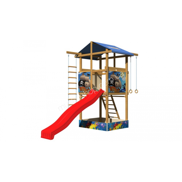 Детская площадка Sportbaby-7 предназначена для настоящих шустряков и непосед. Площадка сделана из сосны, она не раскисает от влажной погоды благодаря обработке. Состоит площадка из башни с песочницей, лестницы из дерева и веревок, детской горки и колец. Горка с гладкой поверхностью, абсолютно безопасная для спуска малышей, нет острых углов и тяжелого металлического крепления, она защищена водоэмульсионной краской, конструкция выдерживает 80 кг веса малыша, площадка занимает очень мало места. У площадки нет острых углов, металлических деталей, она полностью безопасна. Подарите своим малышам кучу различных положительных эмоций и хорошего настроения.