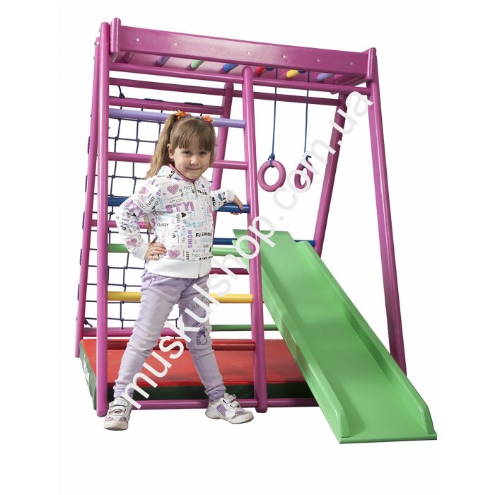 Детский спортуголок SportbabyКроха 3 Барби хорошо подойдет девочкам. Он комплектуется гладиаторской сеткой, шведской стенкой, детской 1,5 м горкой для спуска, матом для упражнения и кольцами. Модель оценят не только девочки, но и мальчики, тут все предусмотрено для активного отдыха. Комплекс изготовлен из сосны, цвета натурального дерева. Само изделие обработано специальным антисептиком, который не вызывает аллергических реакций, а также не втягивает влагу и сырость. Отлично впишется в общий дизайн детской комнаты, не требует много места под свое размещение. Желоб горки полностью безопасен, без острых углов и железных деталей. Комплекс способен выдерживать нагрузку до 80 кг, при этом масса самого изделия не превышает 45 кг.