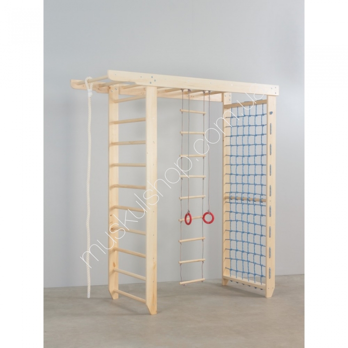 Детский деревянный спортивный комплекс с рукоходом Ладас Гимнаст тренажер, который имеет достаточно удобную и надежную конструкцию, которая может выдерживать большие нагрузки, не теряя своей формы из-за опасности деформации. Покрытие каждого компонента представленного тренажера защищает его от негативного воздействия различных факторов. Такое оборудование применяется только в помещении, будь то ваша комната, спортивный центр, детская спортивная комната, или даже школьный спортивный зал. Данное оборудование крепится у стены для того, чтобы обеспечить устойчивость, а потому и безопасность для самого пользователя. Детский деревянный спортивный комплекс с рукоходом Ладас Гимнаст прекрасное оборудование для использования в коммерческих и в домашних условиях для проведения усиленных тренировок. Конструкция представленной стенки позволит вам выполнять самые разнообразные упражнения, начиная от простейших приседаний.