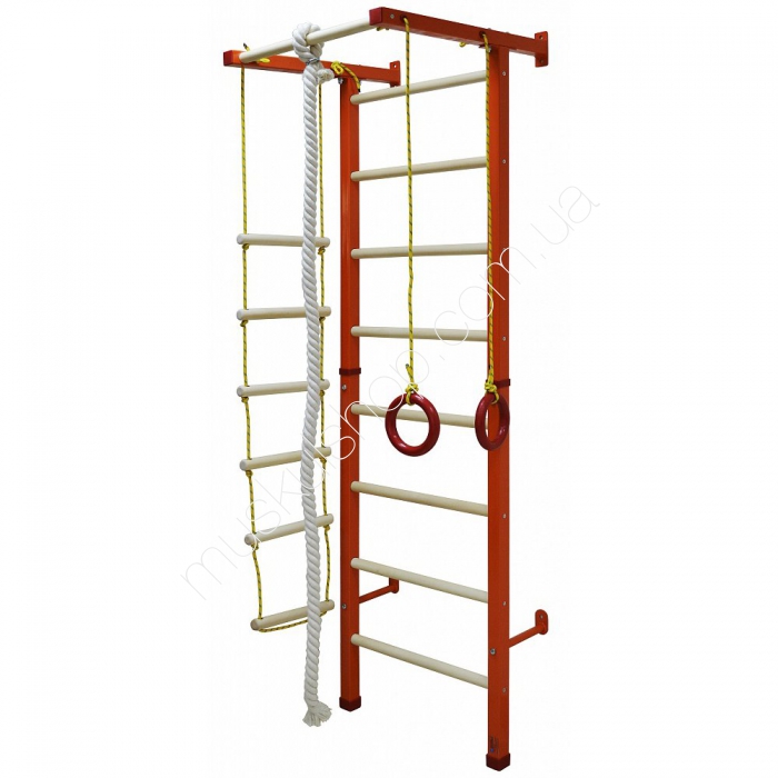 Также, в комплект вы можете купить гимнастический мат с вырезом под детский уголок, который обеспечит дополнительный уровень защиты и убережет от нежелательных травм. Все это позволит выполнять целый спектр упражнений, благодаря которым, ребенок будет гибким, выносливым и сильным. Вертикальные стойки лестницы покрыты полимерным покрытием, перекладины опластмашены. Конструкция достаточно прочная, благодаря чему заниматься на тренажере сможет даже взрослый человек (максимальный вес 70 кг), максимальная нагрузка на навесные элементы - 35 кг.