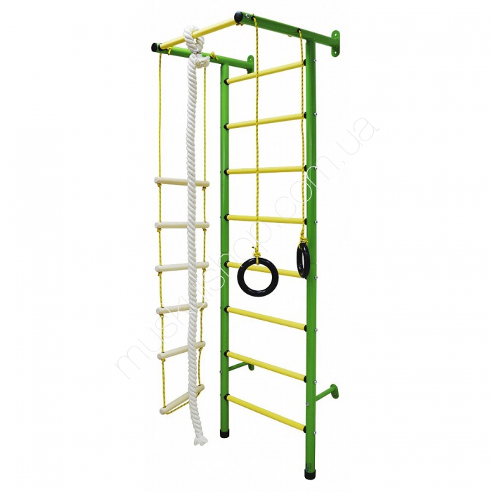 Детский уголок InterAtletika Мини ST002M прекрасный вариант домашнего тренажера, который поможет решить проблему физической активности вашего чада. Ваш ребенок все время под присмотром, что позволит избежать нежелательных травм. Отличное решение, которое не отнимет у вас слишком много времени, финансовых средств и квадратных метров. Это уникальный спортивный комплекс, который прекрасно подойдет любому ребенку и впишется практически в любой интерьер. Он способен поддерживать хорошую физическую форму вашего ребенка, тем самым укрепляя его здоровье, повышая его силу и выносливость. Так же, он приучит вашего малыша к упражнениям с самого детства, и сможет мотивировать его к достижению поставленных целей. Вертикальные стойки лестницы покрыты полимерным покрытием, перекладины опластмашены. Конструкция достаточно прочная, благодаря чему заниматься на тренажере сможет даже взрослый человек (максимальный вес 70 кг), максимальная нагрузка на навесные элементы - 35 кг.